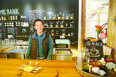 屋梁上的木雕 如今古碼頭已經(jīng)根據(jù)資料記錄而復(fù)建,溪邊的大榕樹下設(shè)計(jì)了古榕廣場(chǎng),搭上了涼棚,人們可以在此停歇、聊天。從古碼頭拐進(jìn)德星樓,就到了直街,民俗博物館坐落于此。博物館收集了來(lái)自鎮(zhèn)民的一份記憶,農(nóng)具、日記、勛章背后都有具體而生動(dòng)的故事。這些物件皆由老百姓主動(dòng)捐獻(xiàn),博物館在介紹信息里清楚地寫明捐獻(xiàn)者的姓名,無(wú)一例外。“博物館里面有我的東西”,住在一旁的居民會(huì)這樣說(shuō),民俗博物館凝聚著一代代人的鄉(xiāng)愁。 再往前走,會(huì)看到一家叫“存取時(shí)光”的小店。小店原為中國(guó)農(nóng)業(yè)銀行舊址,30歲出頭的黃時(shí)杰和朋友一起改造了這里,他們的目標(biāo)是“做一家有故事的店”。裸露的青磚墻,舊式銀行保險(xiǎn)柜,時(shí)尚的吧臺(tái),音響里民謠歌手吟唱著時(shí)光的流逝,有股濃濃的戀舊情結(jié),但又充滿新意。黃時(shí)杰是大喜村的村主任,在他的口中,大喜村四季都美,不可錯(cuò)過(guò)。