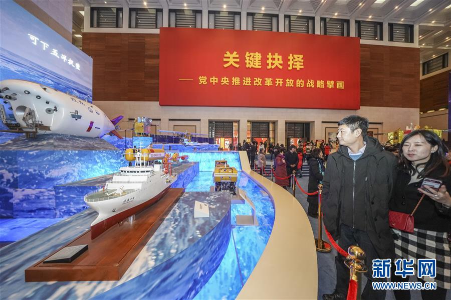 觀眾在北京中國國家博物館舉辦的“偉大的變革——慶祝改革開放40周年大型展覽”上參觀新華社展區(qū)(1月1日攝)。新華社記者 陳曄華 攝 凝聚改革再出發(fā)的磅礴力量 2018年12月18日,人民大會堂,慶祝改革開放40周年大會在這里隆重舉行。 “改革開放已走過千山萬水,但仍需跋山涉水,擺在全黨全國各族人民面前的使命更光榮、任務(wù)更艱巨、挑戰(zhàn)更嚴(yán)峻、工作更偉大。”習(xí)近平總書記擲地有聲的話語,催人奮進(jìn)。 偉大的事業(yè),需要偉大的精神。40年風(fēng)雨同舟,40年披荊斬棘,偉大的改革開放精神始終激勵億萬人民砥礪奮進(jìn)。 一年多來,宣傳思想文化戰(zhàn)線緊緊圍繞“將改革開放進(jìn)行到底”的主題,開展一系列群眾性主題宣傳教育活動、推出一大批理論文章、采制生動的新聞報道、創(chuàng)作豐富的文藝作品,為隆重慶祝改革開放40周年?duì)I造團(tuán)結(jié)奮進(jìn)的濃厚氛圍,為改革開放再出發(fā)構(gòu)筑良好精神文化條件。